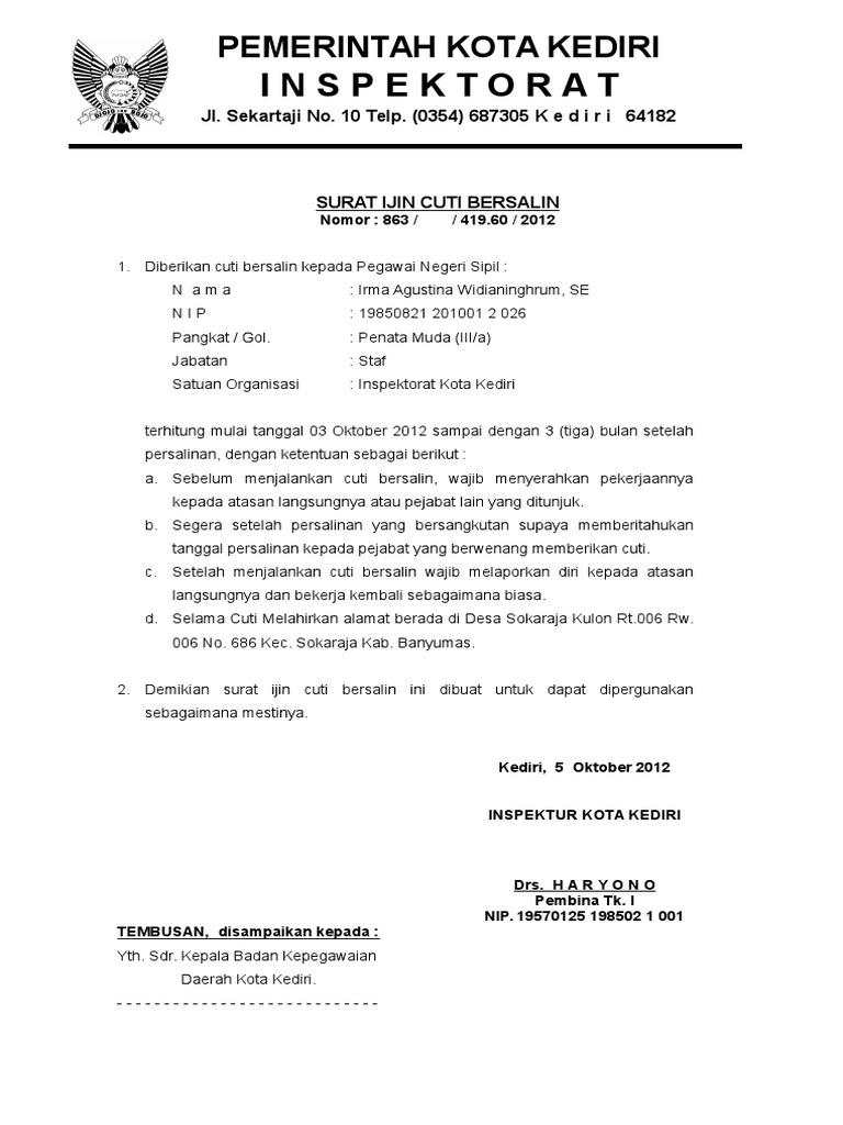 Joko widodo putro alamat : Bisa karena acara keluarga, terjadi musibah, sedang sakit, ada kerabat yang meninggal dunia, atau bahkan hanya sekedar pergi berlibur. Berikut ini merupakan contoh surat permohonan cuti untuk karyawan yang bisa kalian unduh secara gratis di suratresmi.id. Contoh surat cuti dan 7 hak cuti karyawan. Contoh surat cuti karyawan bumn atau resmi dinas.