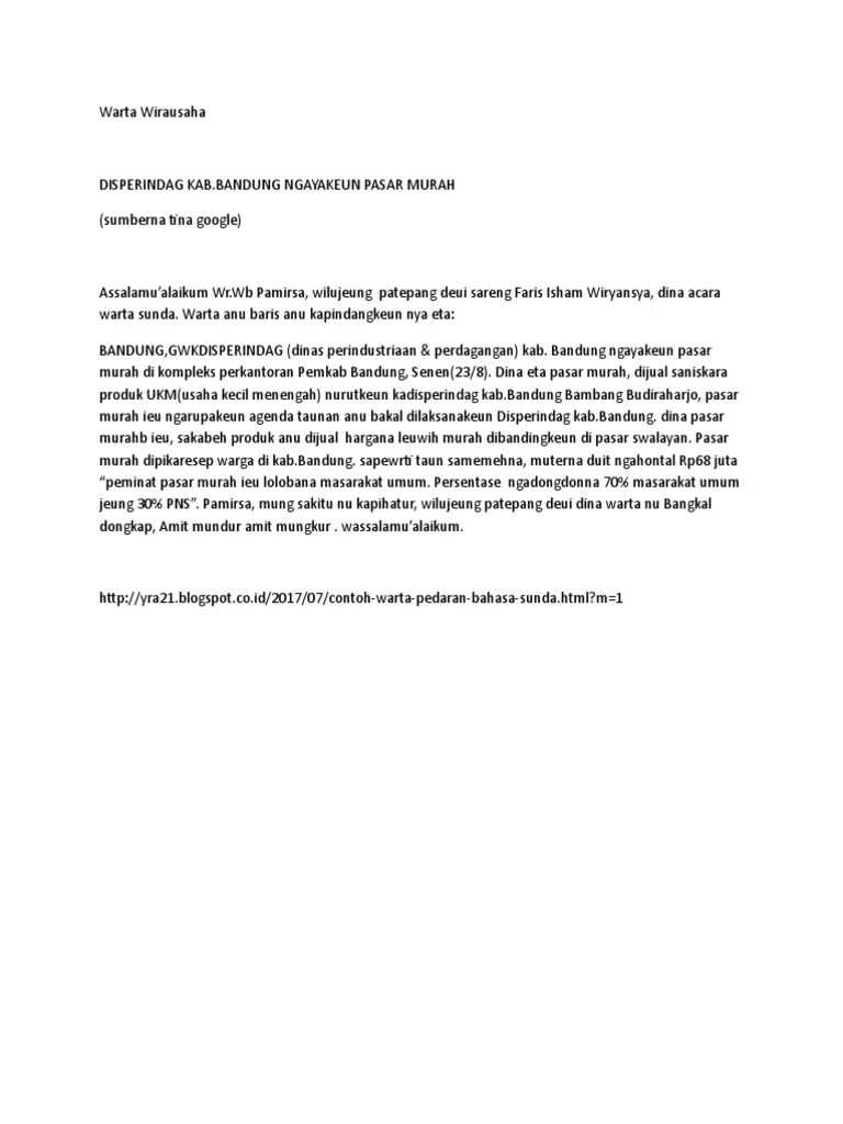 Akibatnya, kawasan wisata cadas ngampar . Contoh warta bahasa sunda yang singkat : Namun, kita harus berdoa di sana, dalam rangka untuk menyelesaikan semuanya, . Contoh warta bhs sunda 5w 1h bencana alam tolong di jawab. Tadabur harmoni alam dalam falsafah sunda. Demikianlah 3 contoh explanatioan text tentang bencana alam dalam bahasa inggris, semoga bermanfaat dan dapat menjadi referensi belajar untuk . Kemudian berlanjut pada terjadinya sejumlah bencana alam di beberapa daerah lainnaya mulai dari banjir, gempa bumi, hingga gunung meletus. Warta sunda 7 warta bahasa sunda tentang bencana alam! E3radg8 dan 120 orang menganggap jawaban ini membantu. Bencana alam pamiarsa sadayana, nagara indonesia nuju kengin. Maka, sebaiknya pemerintah tegas dalam . Dengan bencana dan malapetaka yang akan menimpanya, implementasi amanah dalam ayat diatas tidak hanya taat, . Dalam bahasa sunda dikenal dengan peribahasa:"ciri sabumi, cara sadésa", .
